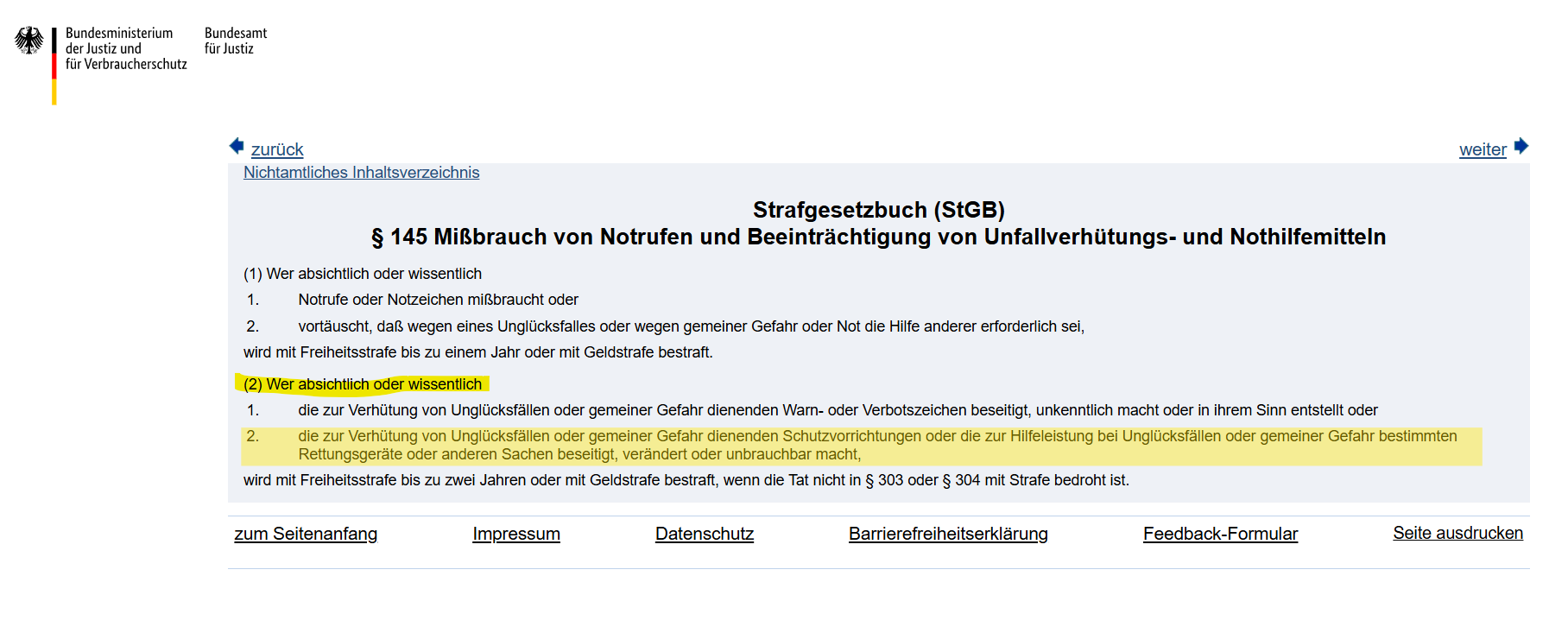 Grundsätzlich stellt das aufkeilen/festbinden oder eine andere Form der Beeinträchtigung einer solchen Sicherheitseinrichtung, eine Straftat nach §145 StGB dar. Wenngleich nach §145 StGB ein solches Vergehen mit einer Geldstrafe oder mit zwei Jahren Freiheitsstrafe bestraft werden kann, wird das in der Praxis die Problematik nicht lösen. Allein schon weil der Verursacher oftmals nicht feststellbar ist.