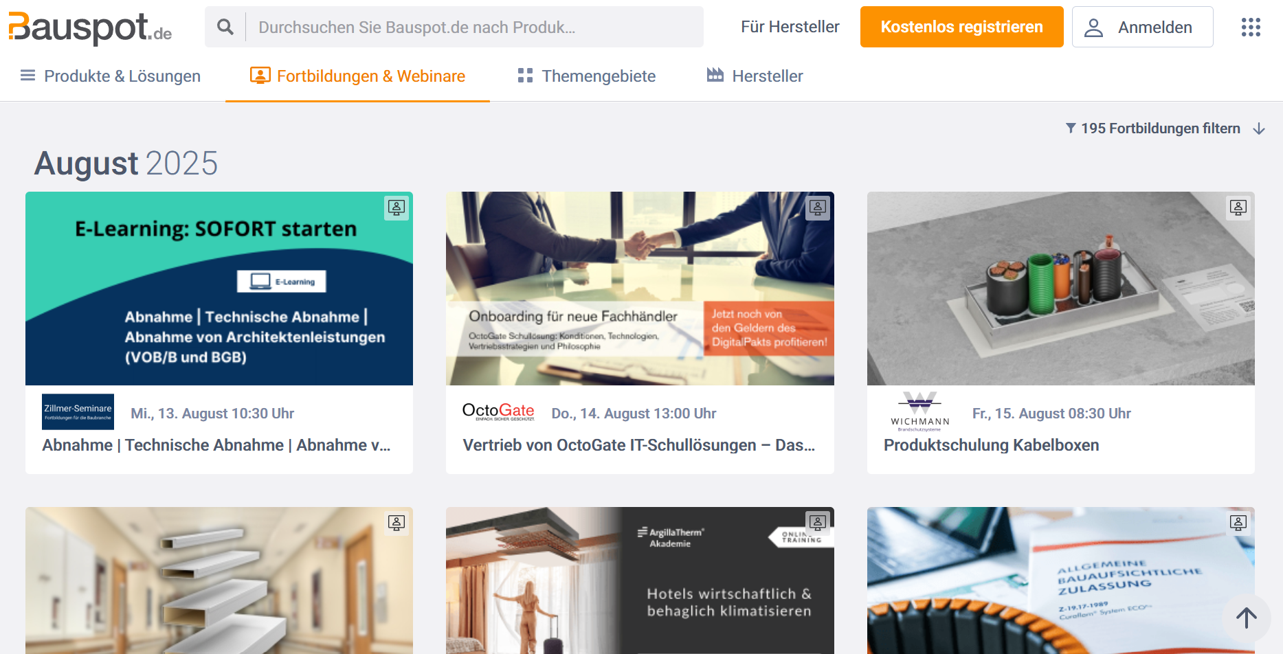 Bauspot.de - Viele Weiterbildungsangebote, auch zum Brandschutz wie zu Kabelboxen, Brandschutzkanäle, Bauprodukterecht im Brandschutz und vieles mehr. Die Angebote sind teils kostenfrei, teils aber auch kostenpflichtig. - Hinweis: Bitte nicht auf das Datum achten, die Angebote werden stetig zu verschiedenen Terminen angeboten.