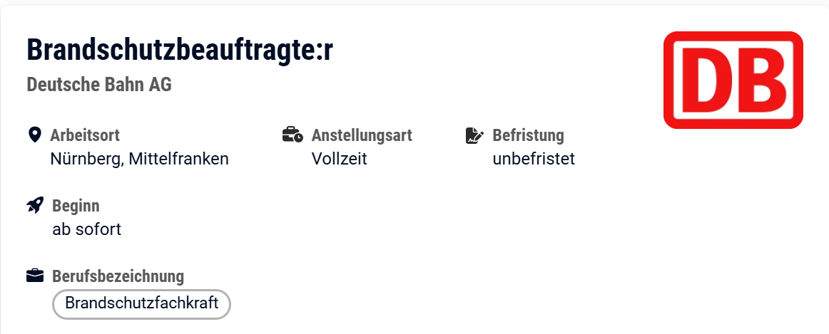 Bewerbung ist aktuell über die Internetseite der Deutsche Bahn AG möglich.